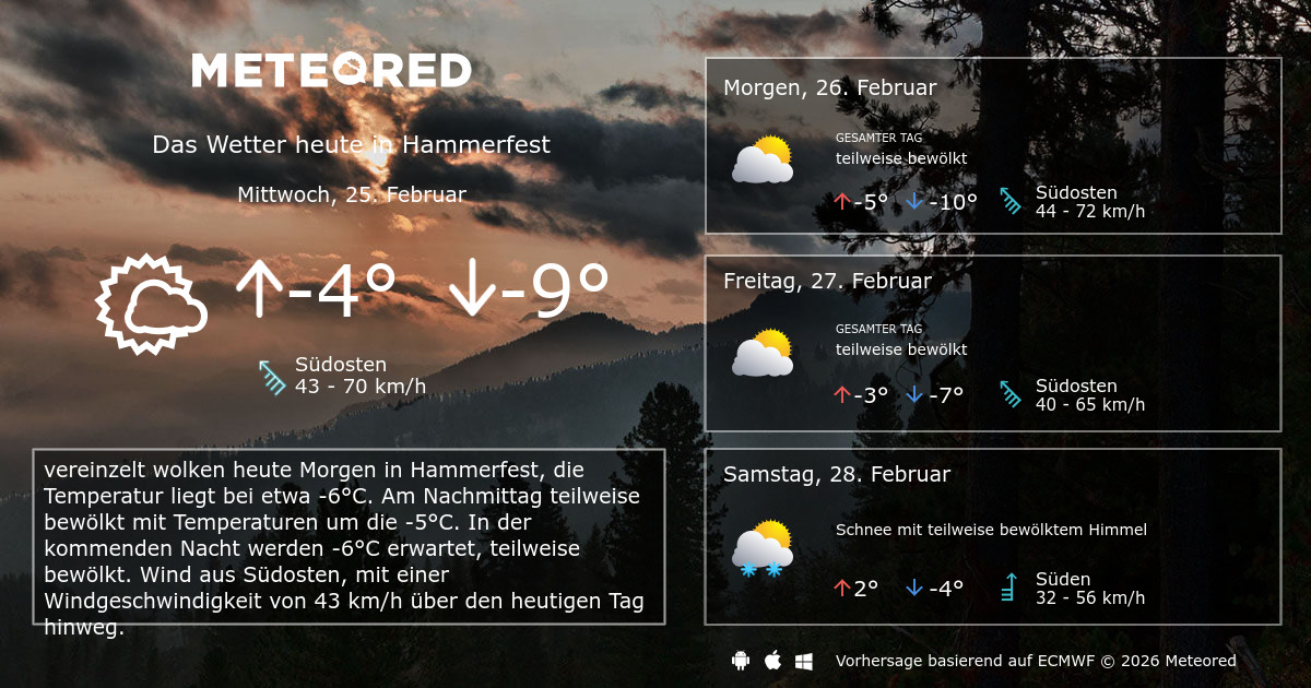 Wetter zusammenfassung und hammerfest vorhersage, incl.